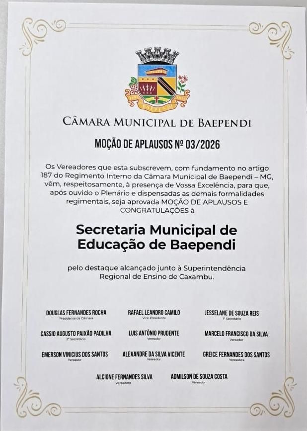 CÂMARA MUNICIPAL DE BAEPENDI – MOÇÃO DE APLAUSOS Nº03/2026